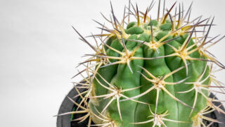 サボテンを植え替えました。植え替えたサボテンは、エリオシケ・’ドーベル’!!黒~濃紫色の草肌に、白~クリーム色のいかつい棘を生やす、原種がなんなのかさっぱりわからない謎サボテンです。そのエリオシケ・’ドーベル’を2025年10月末に植え替えた記事です。