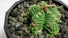 見た目が直射日光に弱そうな面構えをしているので、常時遮光をしています。ギムノカリキウムのサボテンと同じ育て方。