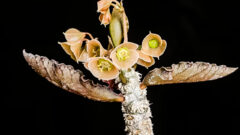 薄茶色で、すり鉢状の花が下向きに咲きます。開花期間は長めで2週間ぐらい咲いてたかな。……観賞価値が高い花ってわけじゃないので、交配予定がないとふーんって感じですが…