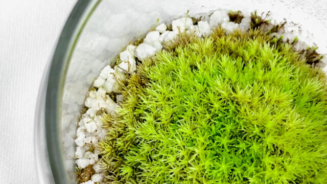 今日は苔テラリウムにしたアラハシラガゴケの話。この前に公開した記事の最後の方で、ヤマゴケは団子状に生長すると書きました。団子状……そうだ!以前(2022年)から育てている、アラハシラガゴケのテラリウムが団子状に生長しているので記事にしようと思った次第。