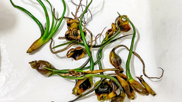 今日は悲しい記事。以前から育てていたチランジア・ブルボーサが枯れて(腐って)しまった話です。悲しい…。ブルボーサは触手のような葉を四方に伸ばす、特徴的な見た目のチランジア。2025年5月にバラバラになりました。原因は蒸れです。霧吹き後は水をしっかり切って、風を当て乾燥させましょう。