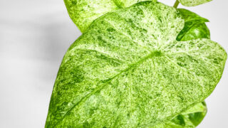 やや広葉で肉厚な葉に細く覆輪の斑が入ります。縦皺が入る葉が面白い。